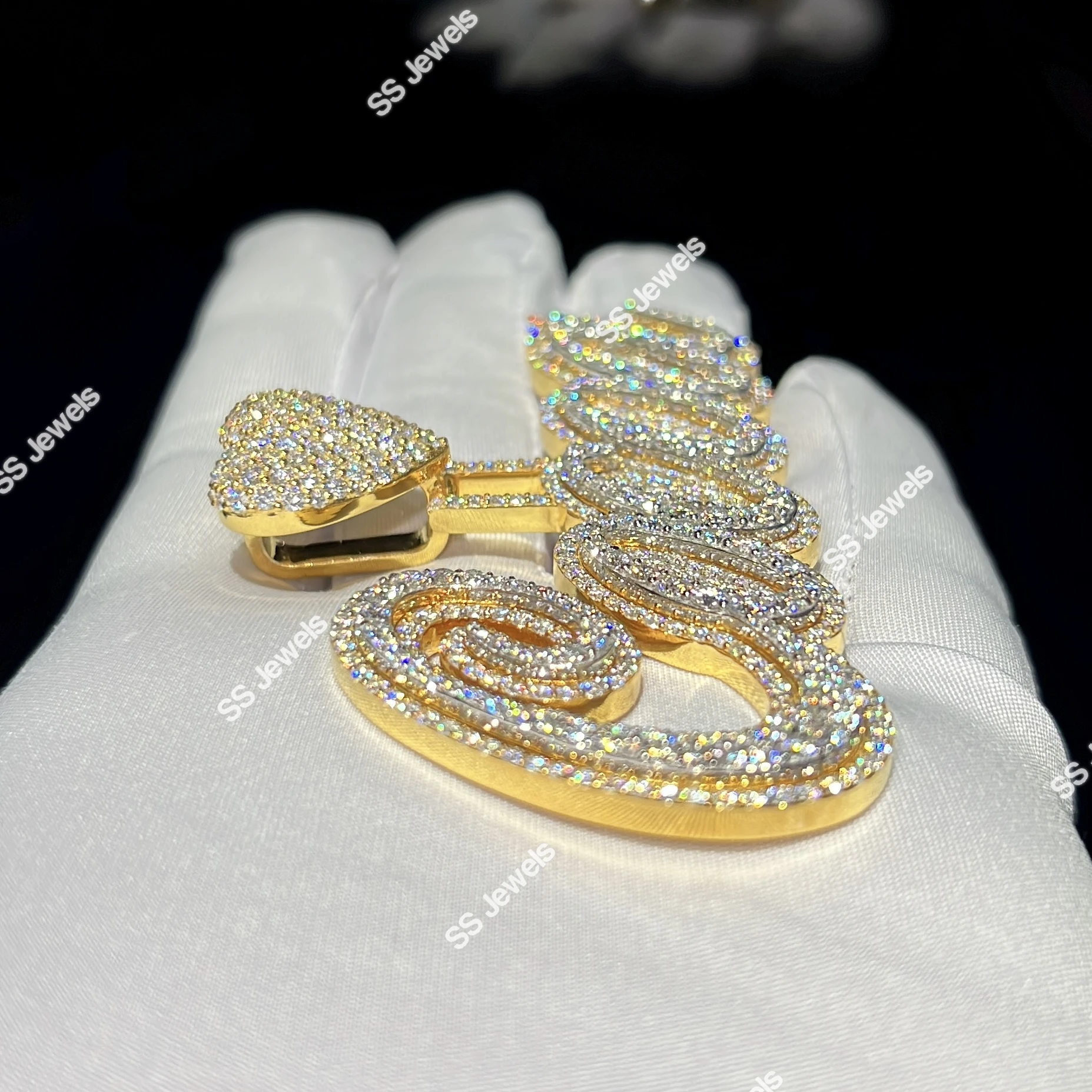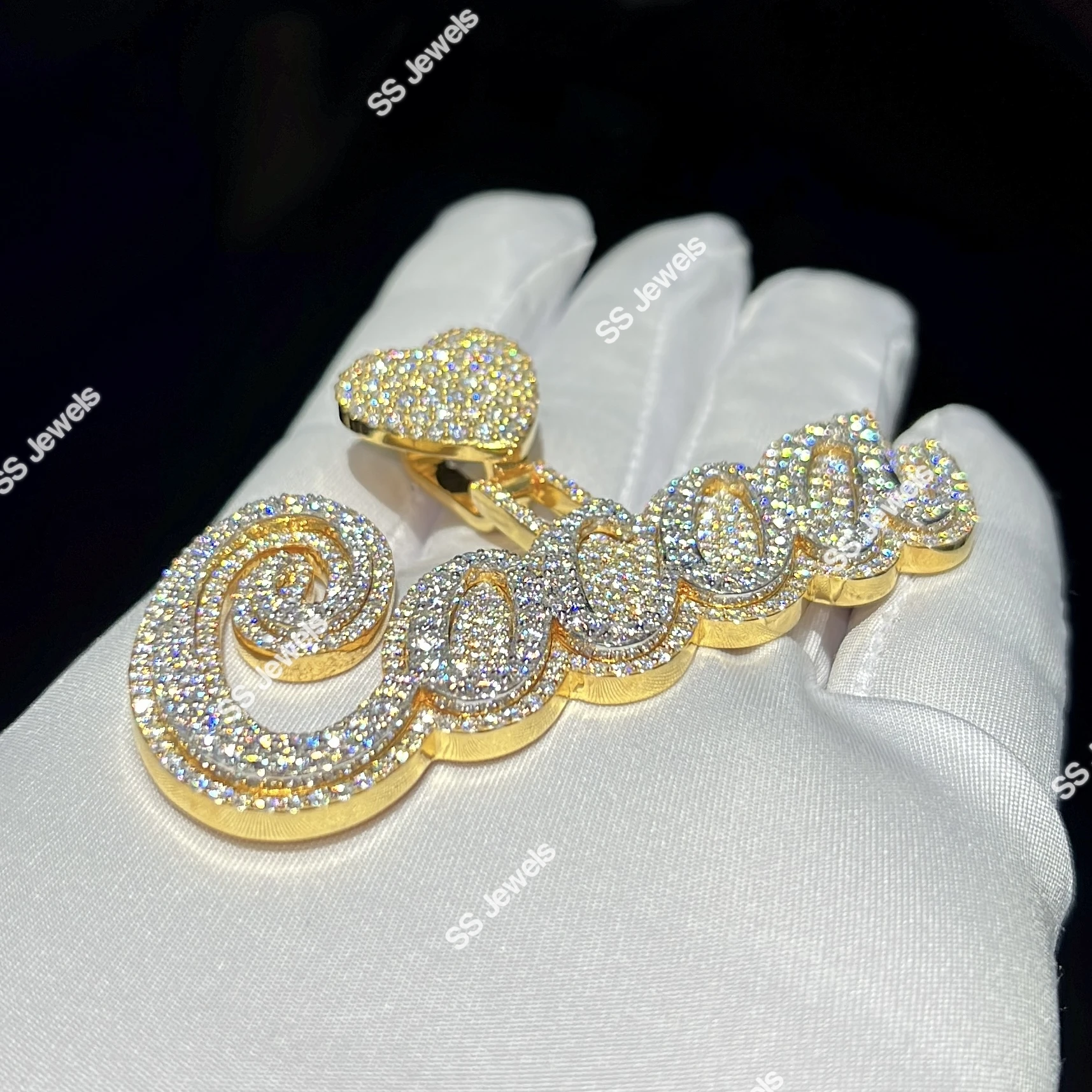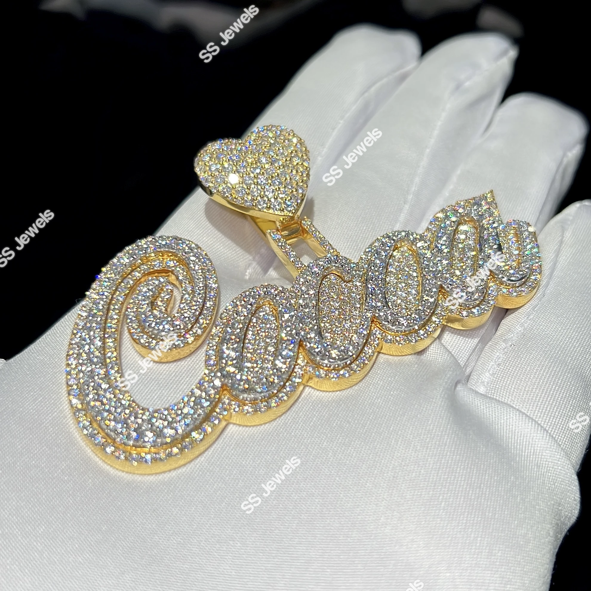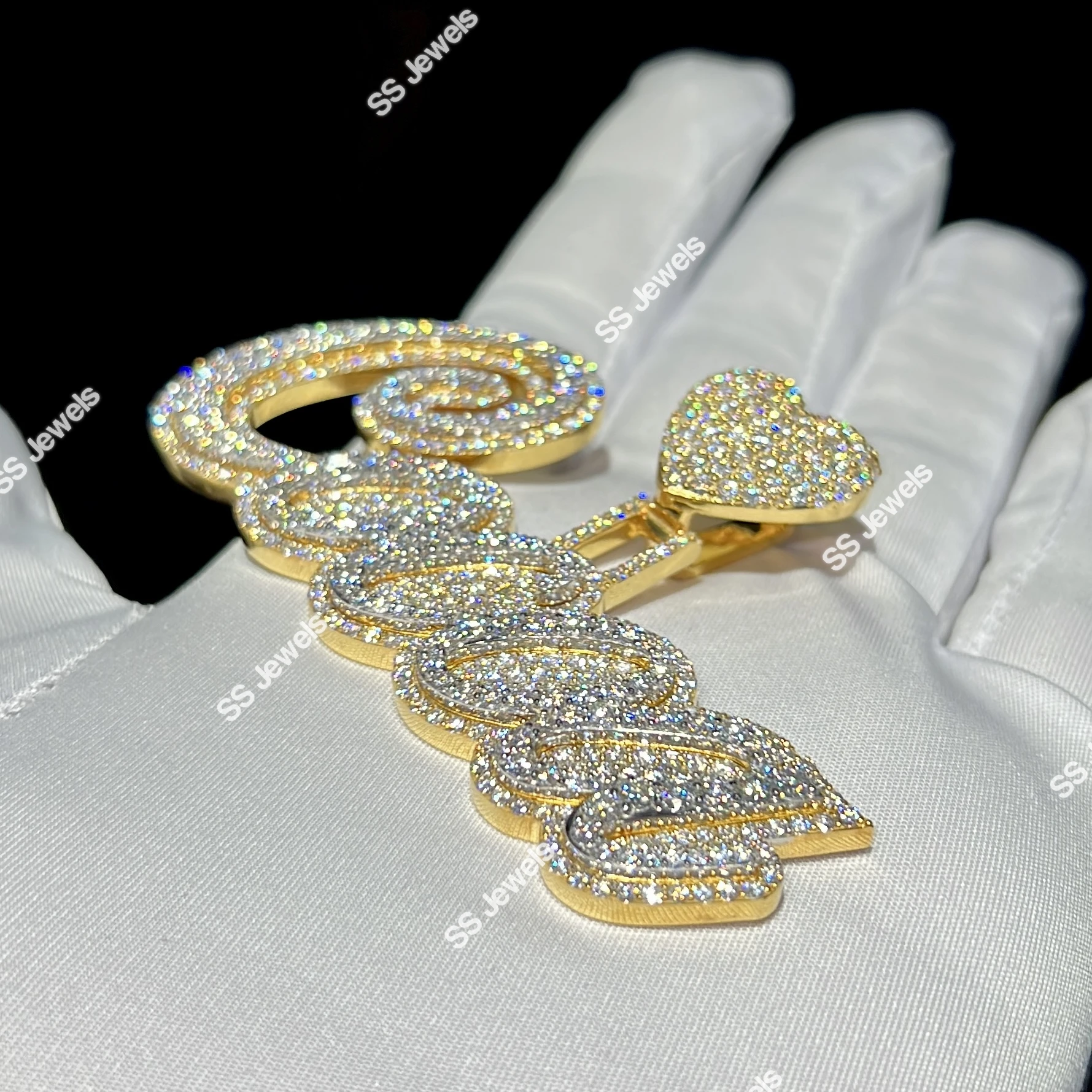Initial Pendant Lab Grown VVS Diamond Letter 925 Sterling Silver Rhodium Plated Brilliant Cut Iced Pass Diamond Tester Charm